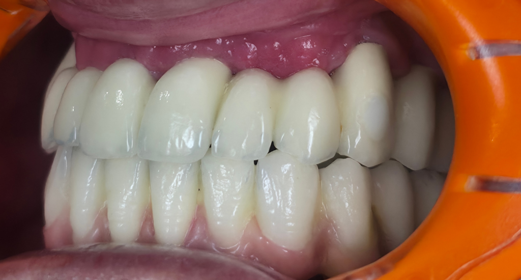 Trois mois après, le haut a été fait avec le même principe avec 6 implants.