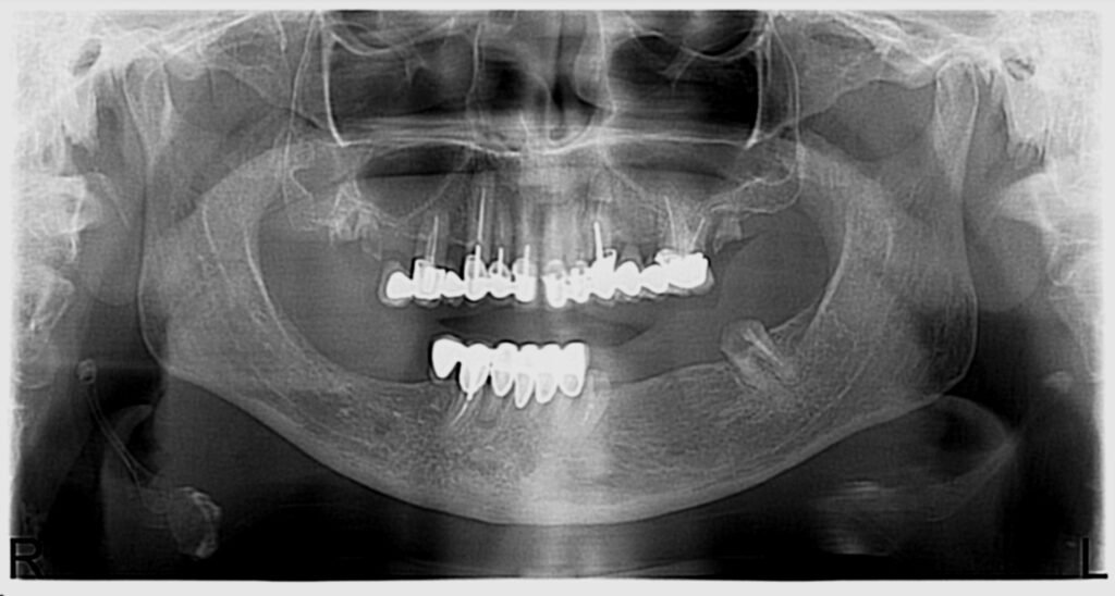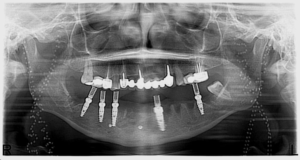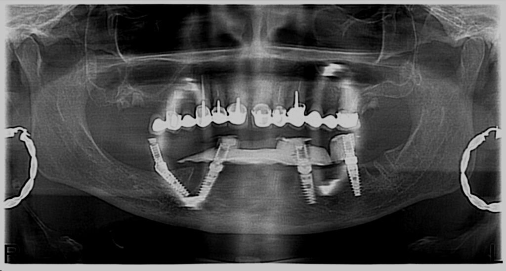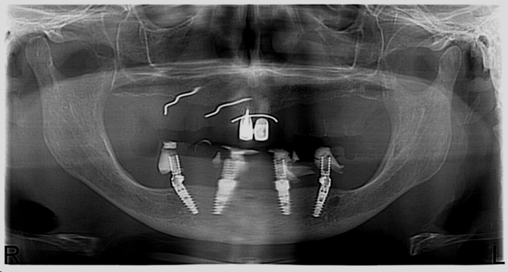 Nous avons commencé par la mâchoire inférieure avec 4 implants et une mise en charge immédiate.